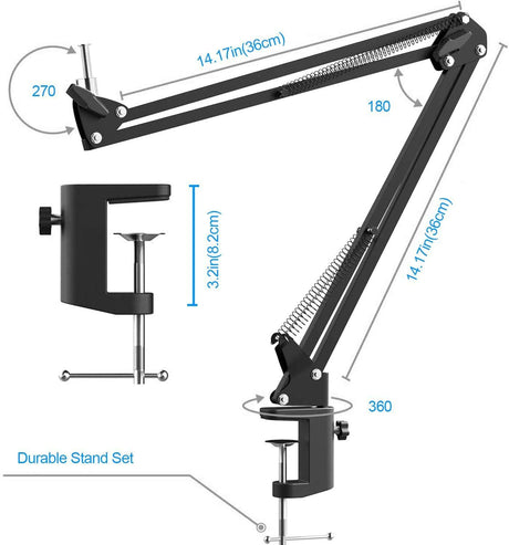 Kit micro USB: microphone condensateur, bras ciseaux réglable - Voix studio clear