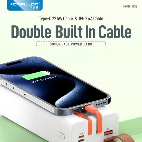 - ÉpuiséÉconomisez: 71.00 Dhsبانك الطاقة KONFULON 30000mAh – شحن سريع 22.5W مع كابلات مدمجة وشاشة رقمية Prix soldé 299.00 Dhs Prix habituel 370.00 DhsPrix unitaire /غير متوفره