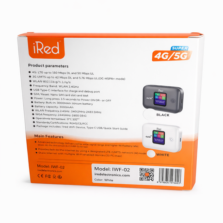 Prix soldé 599.00 Dhs Prix habituel 649.00 DhsPrix unitaire Routeur WiFi mobile 4G iRed IWF-02 avec écran LCD