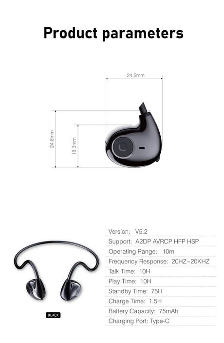 سماعات بلوتوث 5.3 TWS بتقنية التوصيل الهوائي – عمر بطارية 4 ساعات، مقاومة للماء IPX4