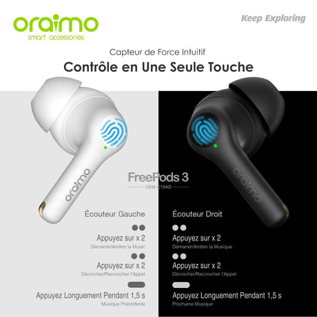 سماعات بلوتوث أورايمو فريبود 3 مع ميكروفون - أسود