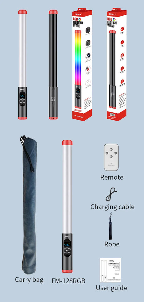 Jmary FM-128 RGB LED Light - شريط ضوئي مقاوم للماء مع شاشة OLED