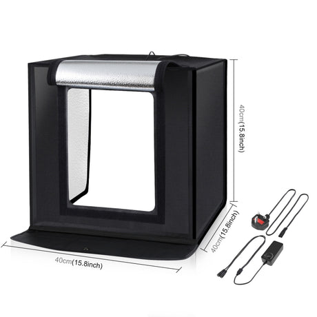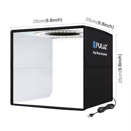 PULUZ – صندوق ضوء قابل للطي 25 سم لاستوديو التصوير مع 6 خلفيات ملونة وإضاءة LED