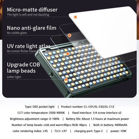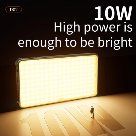 ضوء LED RGB D02 لكاميرا والهواتف الذكية – 10 واط، درجة حرارة 2500-9000 كيلفن، 20 تأثير مشهد