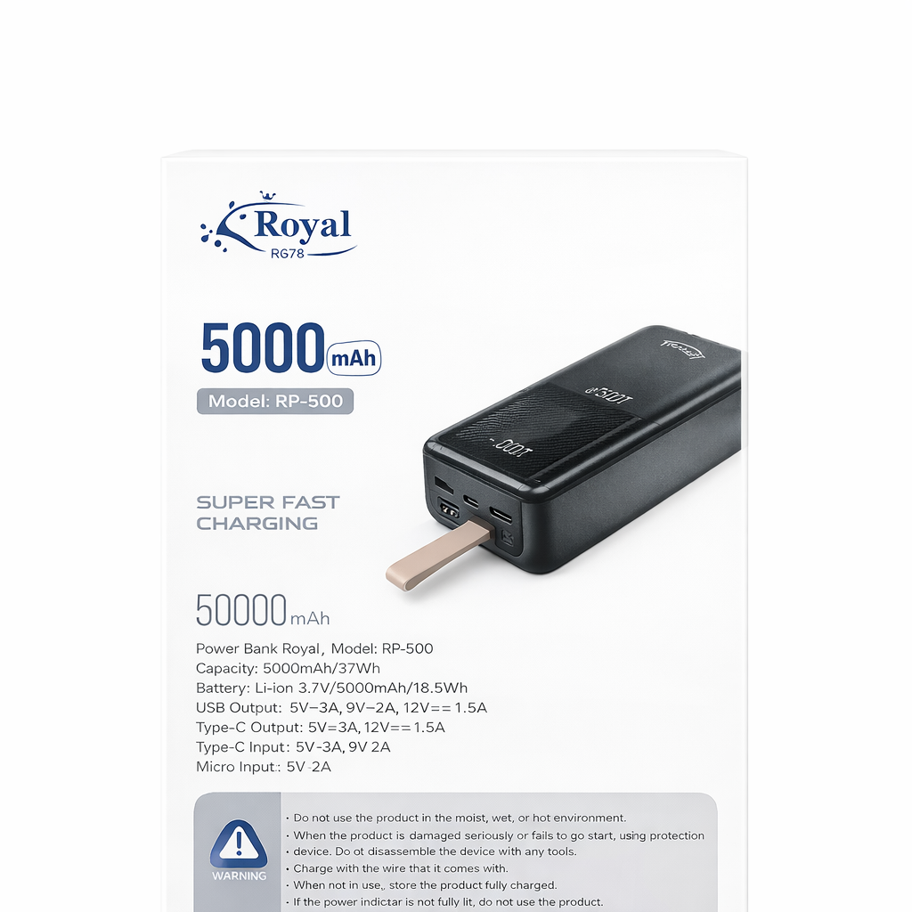 Power Bank Royal R676 RP-500 – 50 000 mAh | Charge Rapide 22,5W