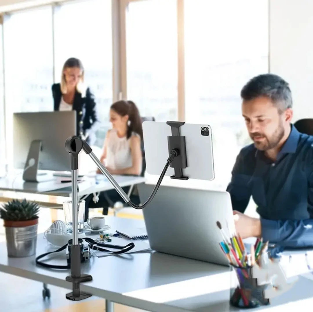 Le support réglable L3T L-350 est conçu pour offrir une expérience de visionnage confortable et polyvalente, que ce soit au lit, au bureau ou en cuisine. Doté d’un bras flexible de 100 cm, il peut être orienté dans n’importe quelle direction afin de garantir l’angle parfait pour regarder des vidéos, lire ou travailler.