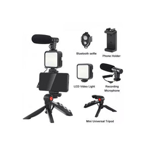 طقم مدون فيديو مع حامل ثلاثي القوائم وميكروفون وإضاءة