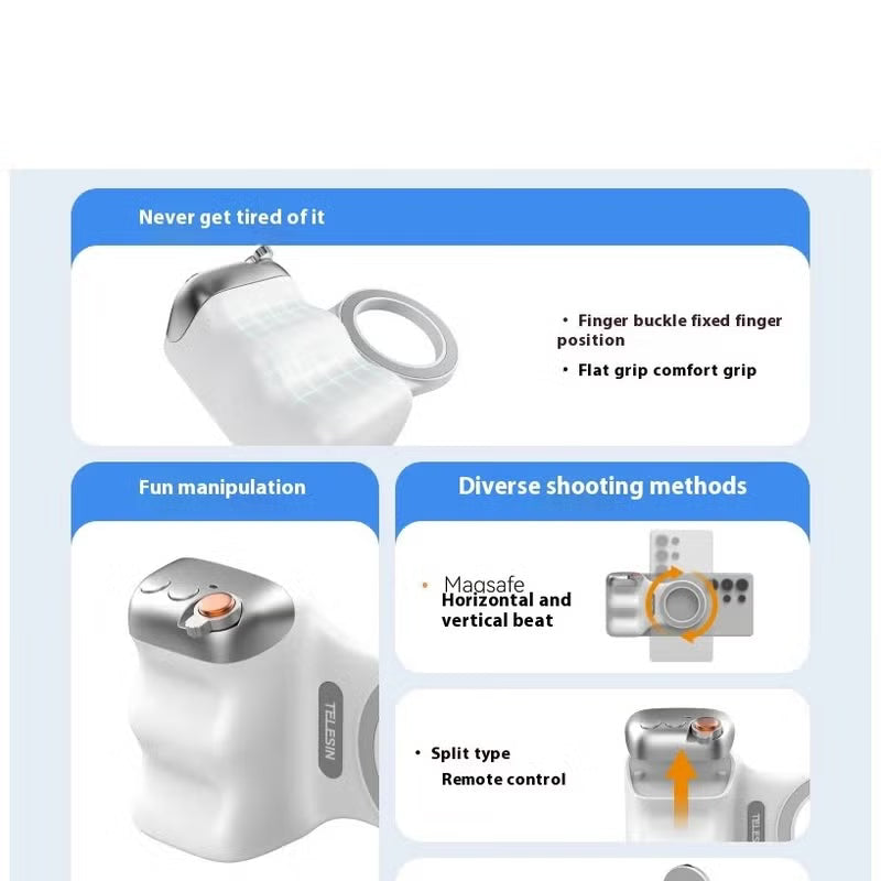 Transformez instantanément votre smartphone en un véritable appareil photo professionnel avec le TELESIN Fun Shot Magnetic Grip 2. Conçue pour les vloggers et les passionnés de photographie mobile, cette poignée ergonomique offre une stabilité inégalée et un contrôle total sur vos prises de vue.