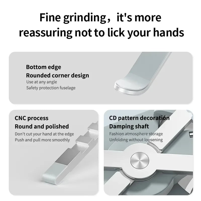 ✅ هيكل قوي من الألمنيوم : قوي ومستقر، يدعم أجهزة الكمبيوتر من 11 إلى 16 بوصة دون انزلاق أو اهتزاز.