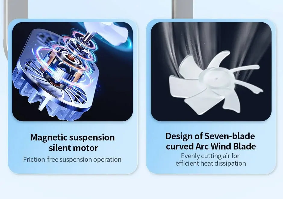 ✅ تهوية مزدوجة فائقة الفعالية : مروحتان صامتتان بزاوية 360° تضمن تبدد حراري ممتاز، مما يقلل من مخاطر السخونة الزائدة.