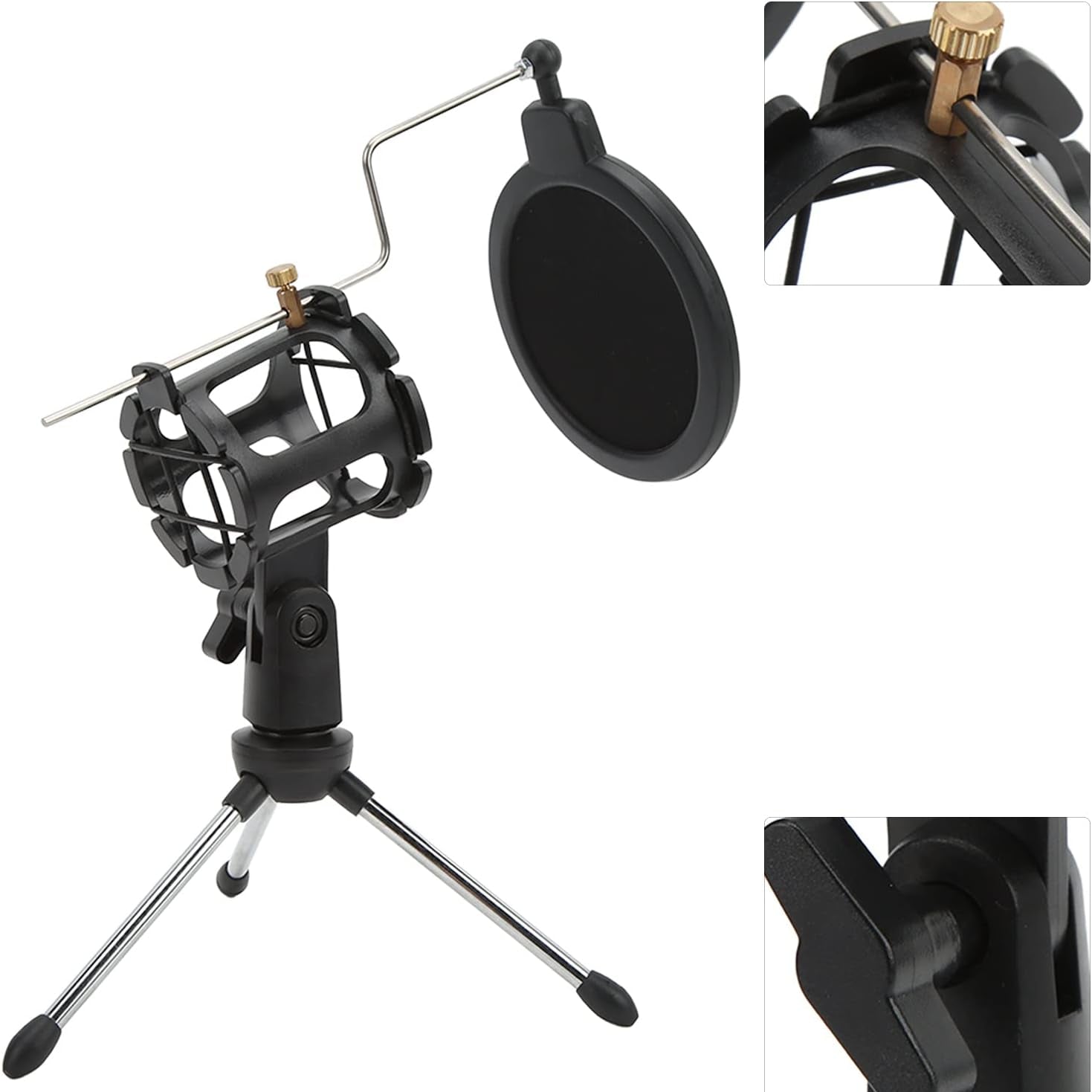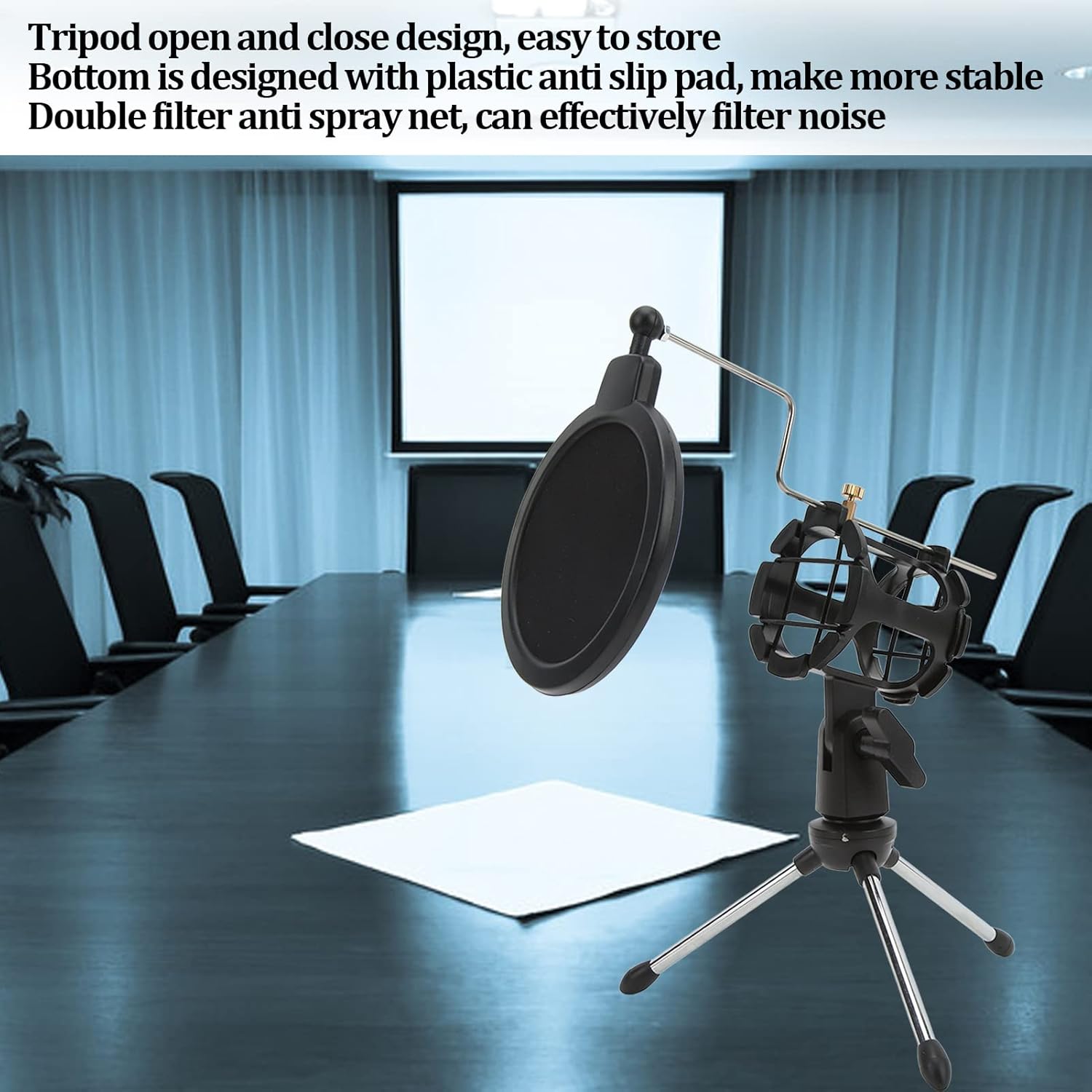 دعم ميكروفون قابل للطي مع فلتر مضاد للرياح وحامل ثلاثي مضاد للاهتزاز