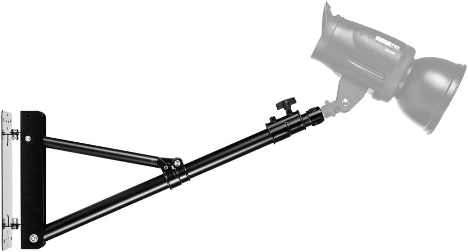 Optimisez votre espace et votre éclairage avec ce bras mural extensible pour studio photo et vidéo. Conçu pour une fixation murale solide, il permet de supporter facilement des ring lights, softbox, éclairages LED, flashs et réflecteurs.
