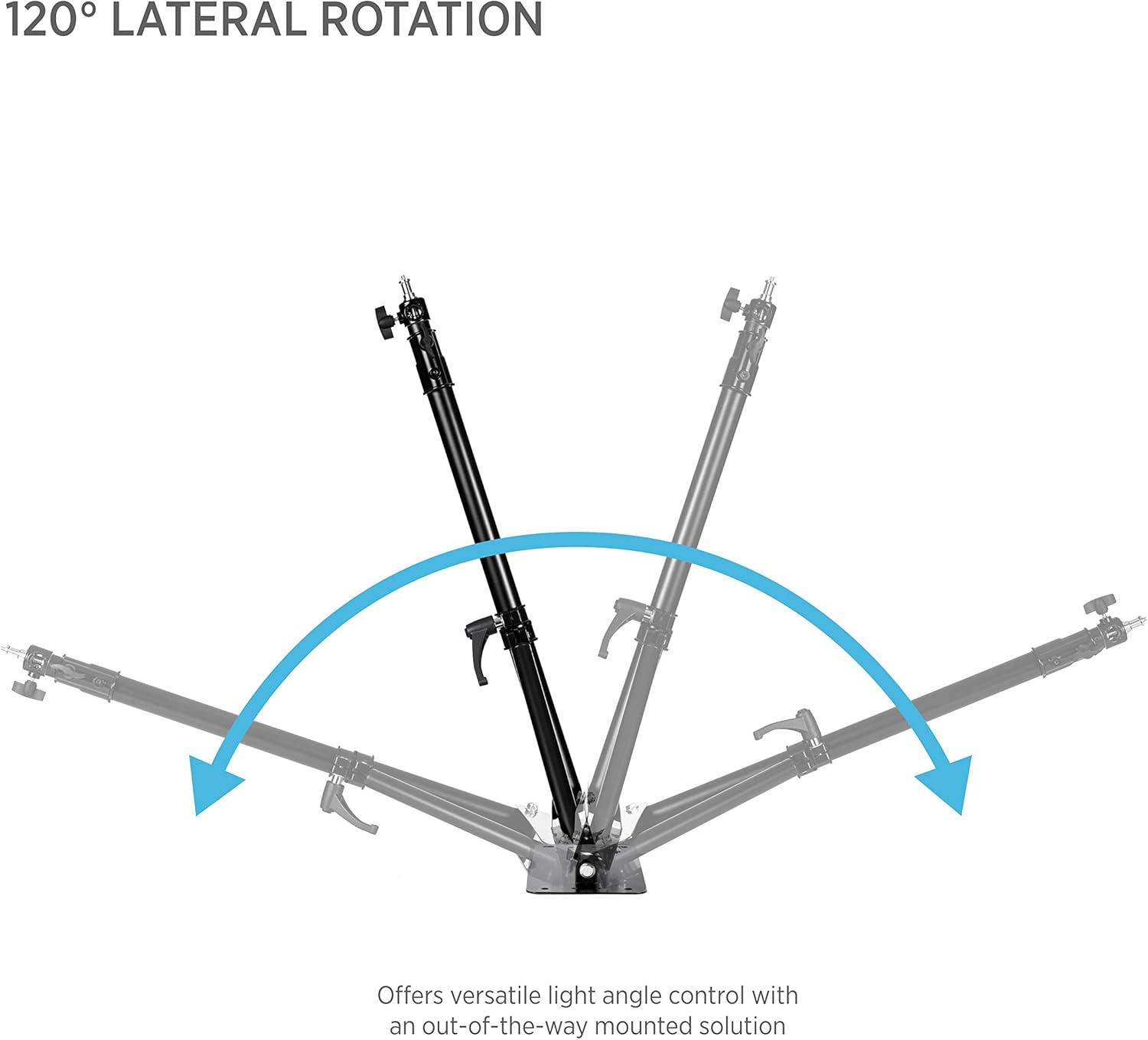 Grâce à sa rotation jusqu’à 180° et à son bras télescopique réglable, vous ajustez précisément la position, la hauteur et l’angle de votre éclairage selon vos besoins. Son système pliable permet également un gain de place optimal lorsqu’il n’est pas utilisé.