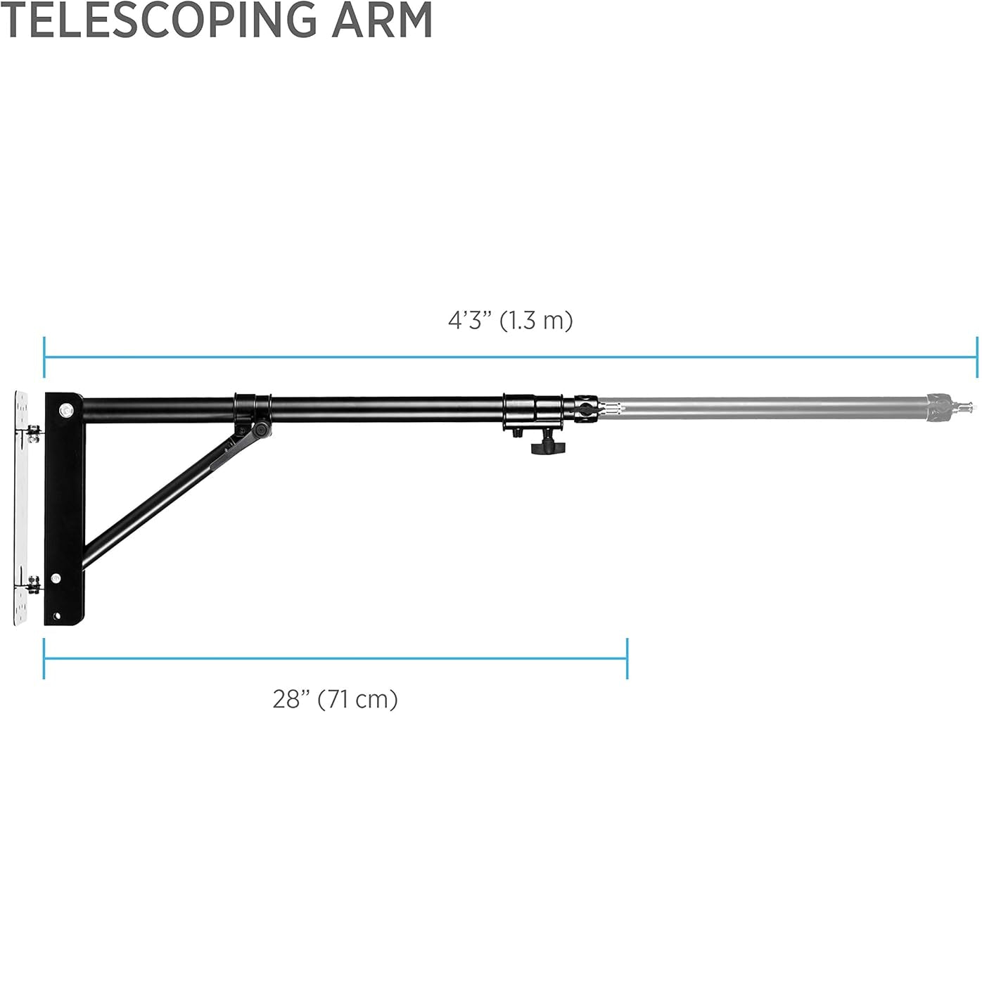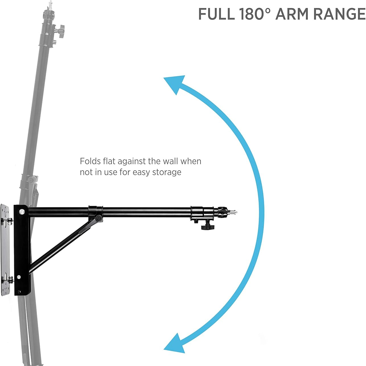 Bras mural extensible 180° pour ring light et éclairage studio