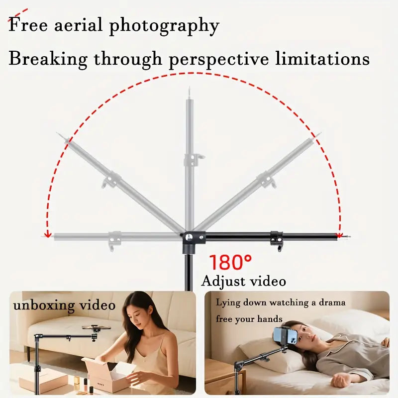Son cadre métallique solide garantit stabilité et durabilité, tandis que son design réglable en hauteur offre une grande flexibilité pour s’adapter à tous vos besoins créatifs. Grâce à son bras télescopique, vous pouvez ajuster facilement l’angle et la position pour capturer des images sous différents cadrages.