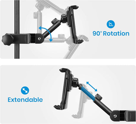 دعم للتابلت مع مشبك تثبيت عالمي للحامل الثلاثي