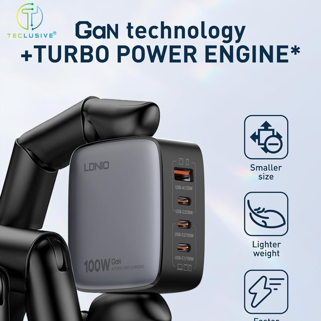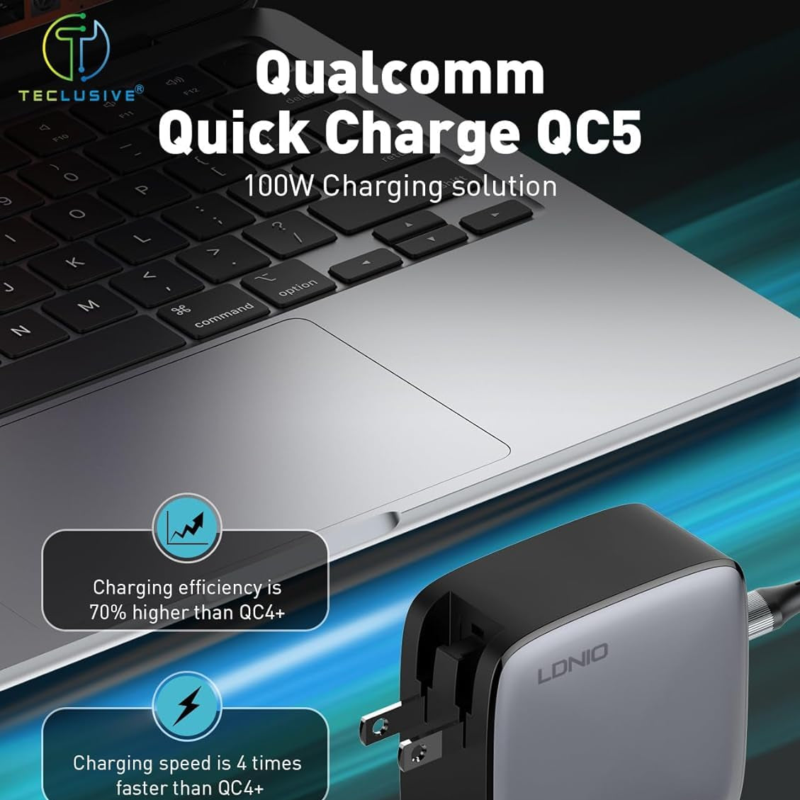 Chargeur GaN 100W LDNIO Q408 avec 4 Ports USB (3 Type-C + 1 USB-A)