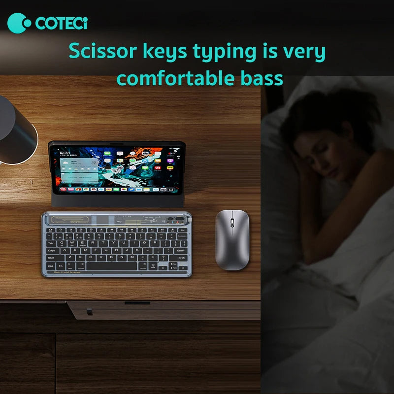 يتميز لوحة المفاتيح للألعاب COTECI Cyberpunk Magic Crystal 4.2 بـ تصميم مضاء بشكل رجعي و أداء حديث لتجربة كتابة فريدة. مع بنائه الكريستالي وأسلوبه المدمج، فهو مثالي للمكتب، واللابتوبات، أو حتى الأجهزة اللوحية.