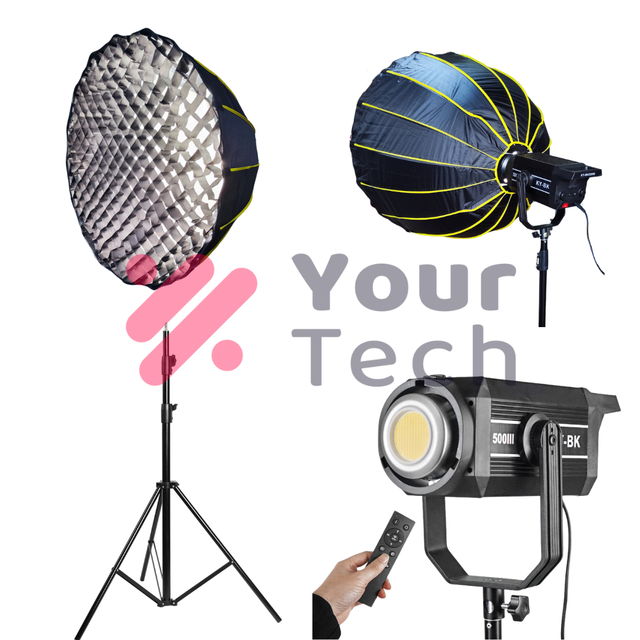 Kit Lumière Vidéo LED 500W avec Softbox Parabolique 90 cm + Trépied 2.6 m