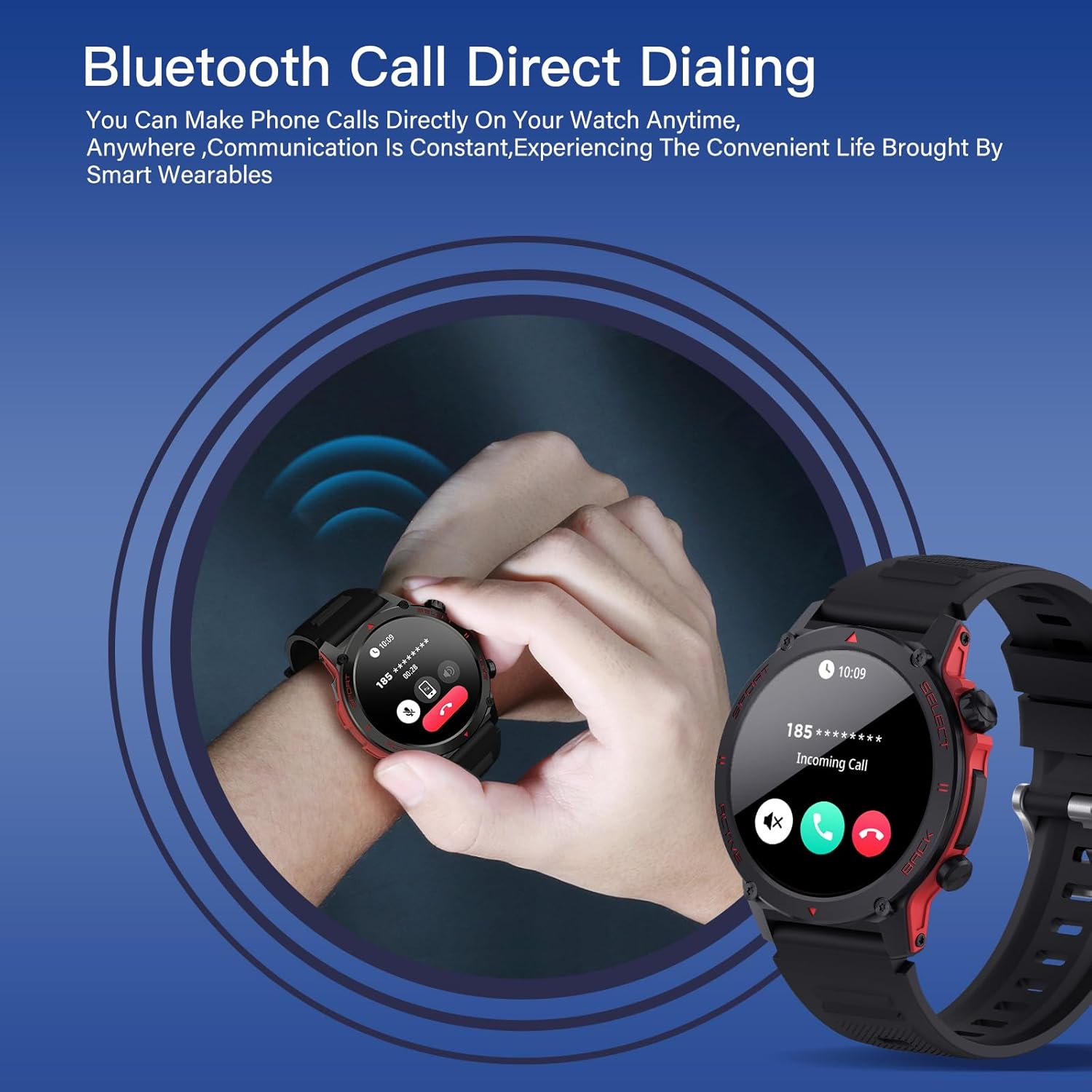 Cette smart watch avec fonctions musulmanes intègre les alertes des heures de prière, le rappel Adhan, la direction de la Qibla et les 99 noms d’Allah, avec prise en charge complète de la langue arabe. Elle permet également de passer et recevoir des appels Bluetooth directement depuis le poignet grâce au micro et haut-parleur intégrés.