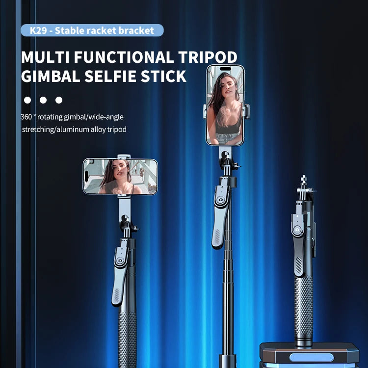 Le selfie stick trépied K29 est un support polyvalent conçu pour offrir une grande stabilité et une hauteur exceptionnelle allant jusqu’à 2,15 mètres. Grâce à son bras télescopique robuste en aluminium et ABS, il est idéal pour les selfies, les vidéos, les lives, le vlogging ou les prises de vue en extérieur.