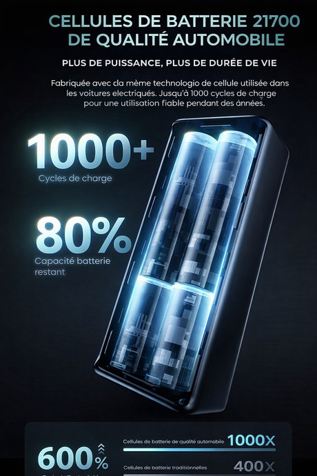 Power Bank 100W 20 000 mAh USB-C PD pour Ordinateur Portable