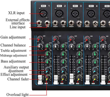 - Table de Mixage DJ 7 Canaux Bluetooth avec Effets et USB – Console Audio Pro Prix habituel 750.00 DhsPrix unitaire /Indisponible