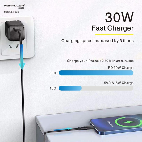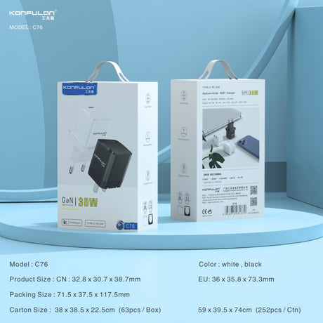 Chargeur domestique KONFULON C76 gan PD KĆ 30W blanc
