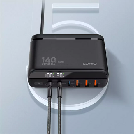Chargeur GaN 140 W LDNIO A6140C – 6 Ports USB‑C/A, Écran LED, Super Charge Rapide