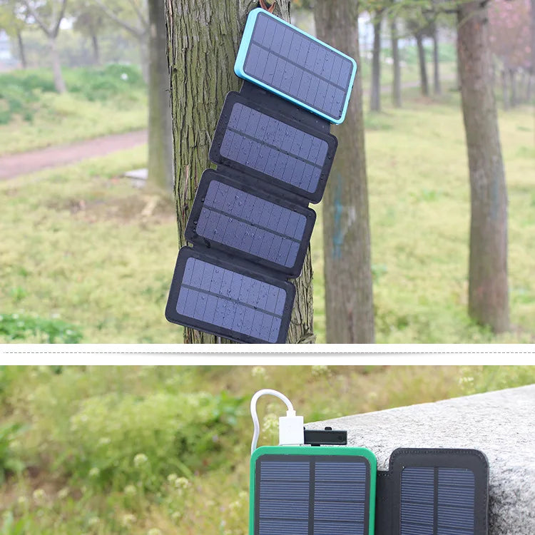 Power Bank Solaire Plustar 4 Panneaux, 10000mAh, Noir