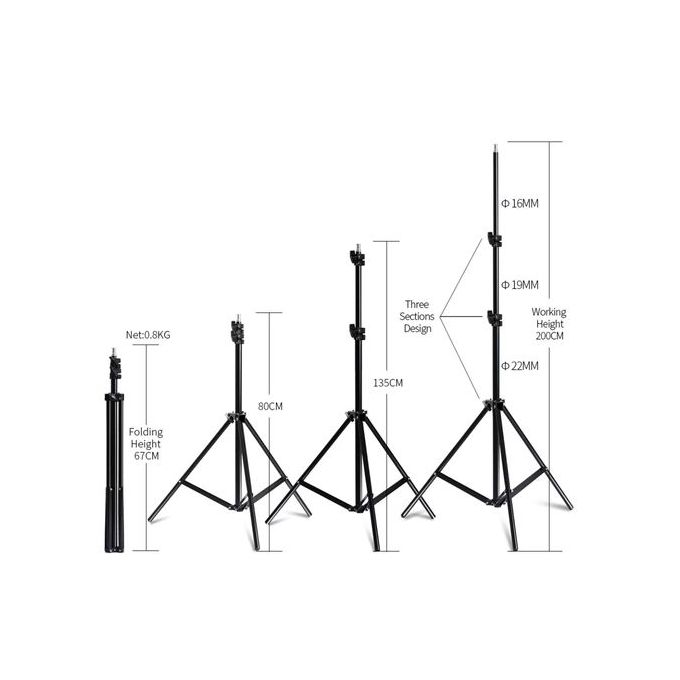 🔹 Trépied stable 200 cm : repliable à 68 cm, facile à transporter et à installer.