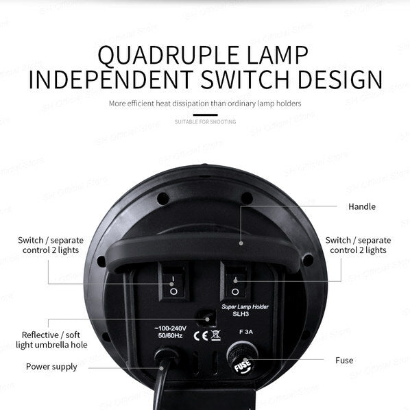 🔹 Support 4 lampes : livré avec 4 ampoules LED de 20W chacune (soit 80W au total), base E27 compatible avec la majorité des systèmes.