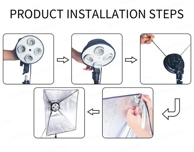 Puluz Softbox 50x70cm – Kit Éclairage Photo/Vidéo avec 4 Lampes de 20W + Trépied 200cm