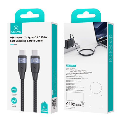 Câble Tressé USB-C vers USB-C Usams US-SJ633 – 100W PD – 2M Noir
