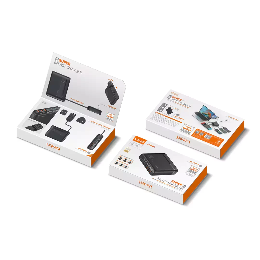 Profitez d’une charge rapide, intelligente et ultra-puissante avec ce chargeur de bureau 140W signé LDNIO. Conçu avec la technologie GaN de nouvelle génération, il permet de charger simultanément plusieurs appareils tout en gardant une taille compacte et une excellente dissipation thermique.