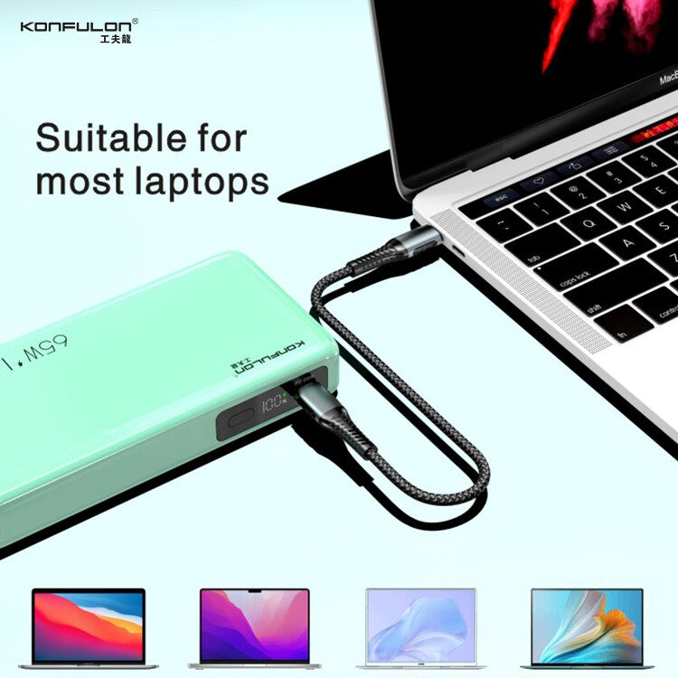 🔹 Rechargez vos appareils rapidement et efficacement avec la batterie externe Konfulon 20000mAh PD 65W. Conçue pour les PC portables, MacBook, tablettes et smartphones, elle est idéale pour les professionnels et les voyageurs.