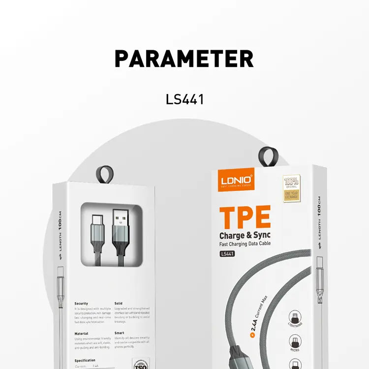 LDNIO LS441 - Câble USB de Charge Rapide et Transfert de Données pour Micro et Type-C