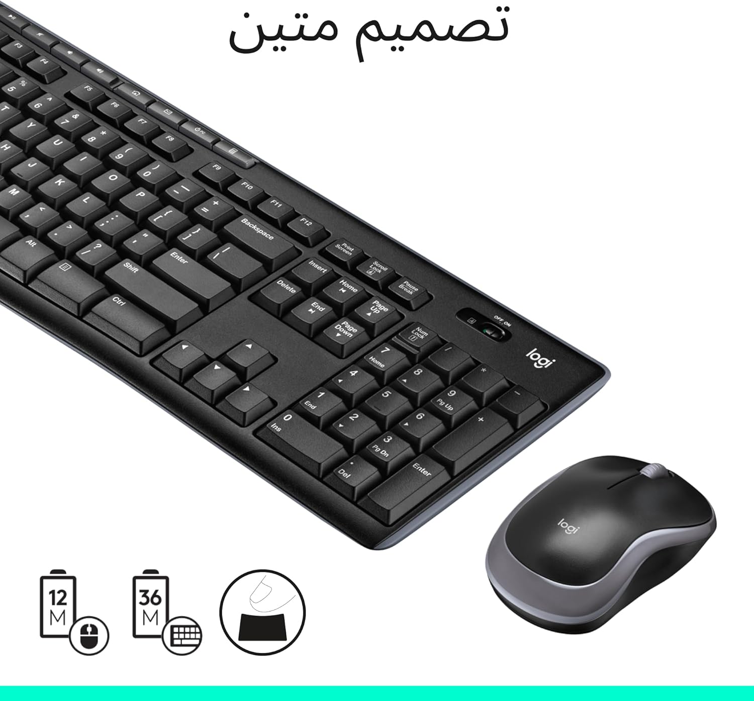 - Autonomie Longue Durée : Jusqu'à 36 mois d'autonomie pour le clavier (2 piles AAA) et 12 mois pour la souris (1 pile AA).