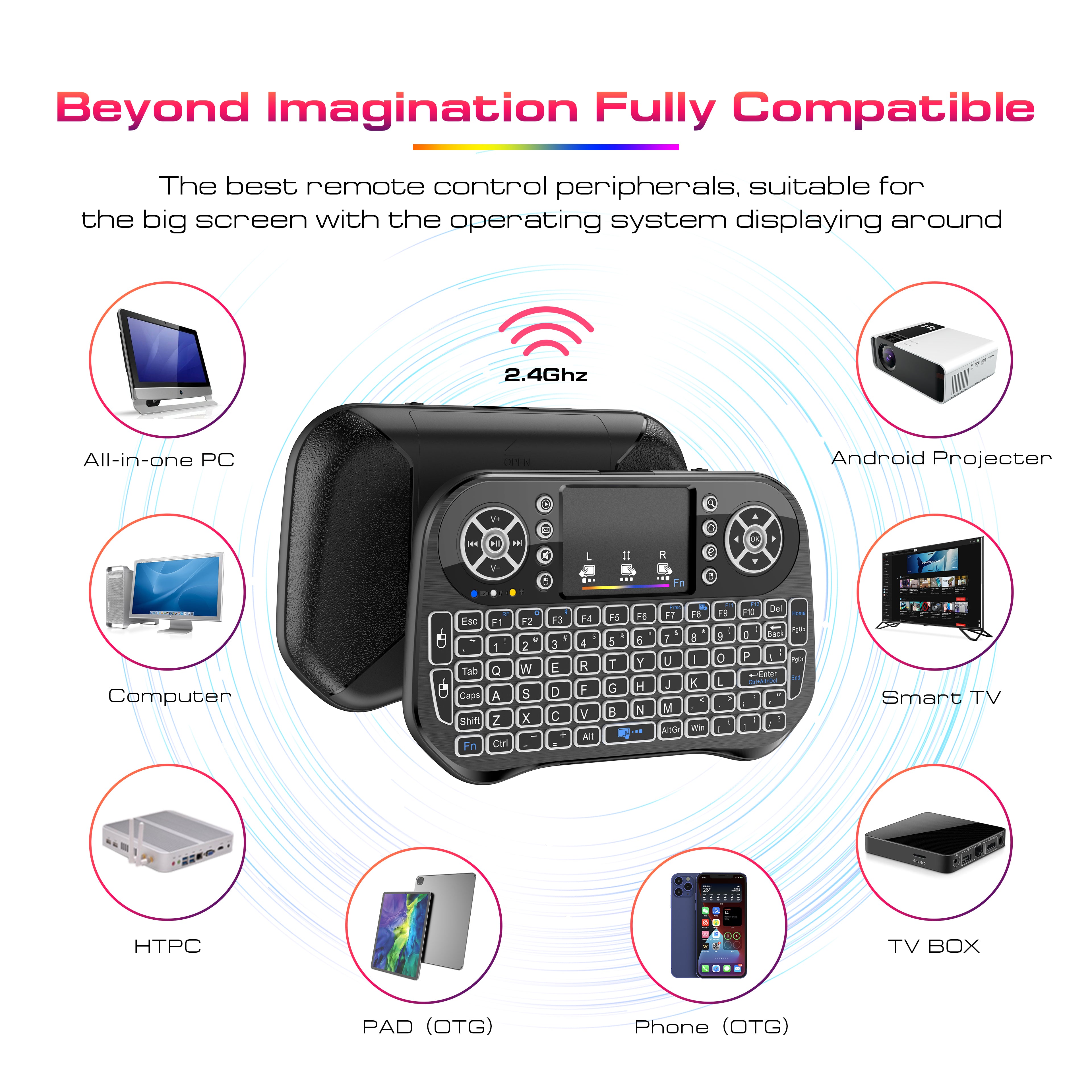 Mini Clavier Sans Fil I10 2.4GHz RGB avec Air Mouse et Pavé Tactile