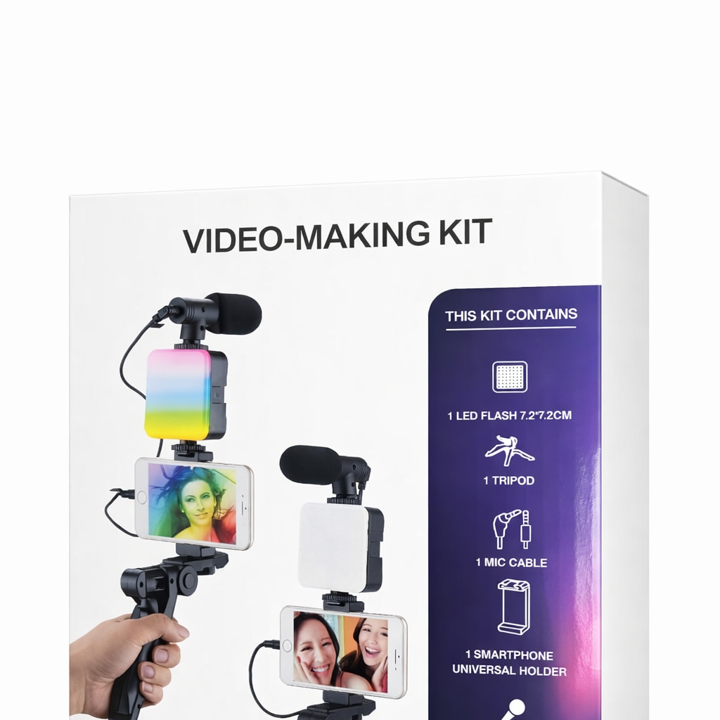 Ce kit vidéo complet pour smartphone est conçu pour la création de contenus de qualité professionnelle. Il regroupe tous les accessoires essentiels pour améliorer à la fois l’image et le son lors de vos vidéos, vlogs, interviews, diffusions en direct ou appels vidéo.