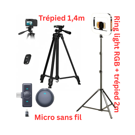 Pack Studio Créateur Micro Ring Light RGB + Trépieds