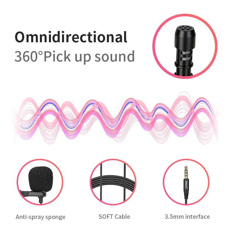 Capturez un son de haute qualité avec le microphone cravate Jmary MC-R1 Lavalier. Ce microphone omnidirectionnel à condensateur offre une excellente clarté audio, idéale pour les appels, les podcasts, les vidéos YouTube, TikTok, et bien plus. Avec un câble anti-bruit de 2 mètres, il réduit efficacement les interférences et garantit une expérience d'enregistrement fluide et claire.