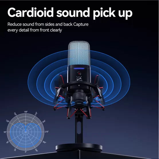 Sa directivité cardioïde assure une capture vocale précise tout en réduisant efficacement les bruits ambiants. L’éclairage RGB personnalisable ajoute une touche immersive à votre setup, tandis que le contrôle du gain réglable permet d’adapter le niveau sonore à chaque situation.