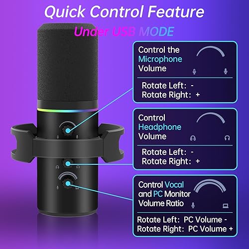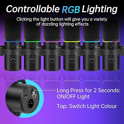 • Fonctions : Mute tactile, gain, monitoring casque, éclairage RGB
