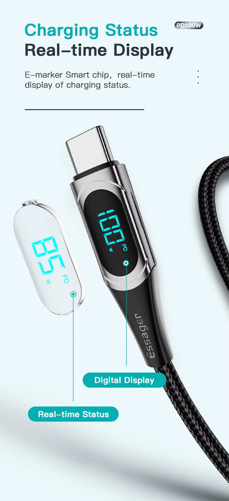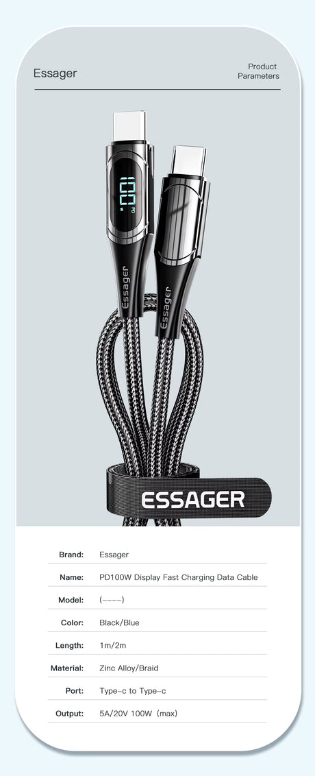 Câble Essager USB-C vers USB-C 100W PD Charge Rapide 2m