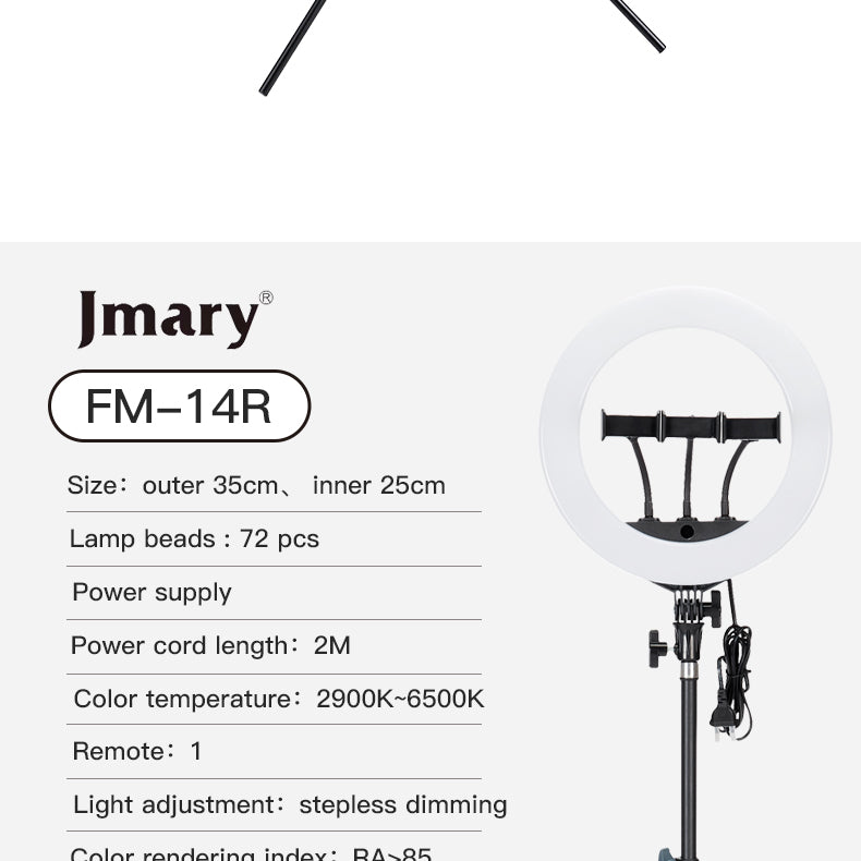 Ring Light Professionnel 36W - Jmary FM14R 34cm Dimmable LED + Trépied 2m