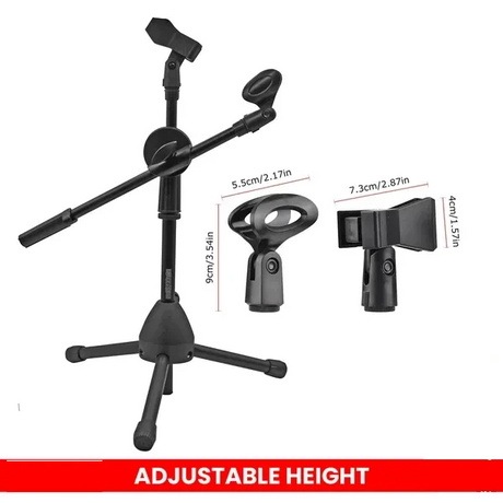 Stock très faible (2 unités)Prix soldé 69.00 Dhs Prix habituel 120.00 DhsPrix unitaire Support de Microphone Professionnel Réglable avec Bras Télescopique et Trépied Pliable