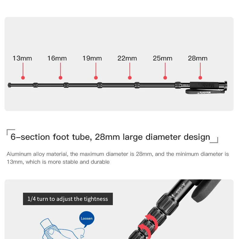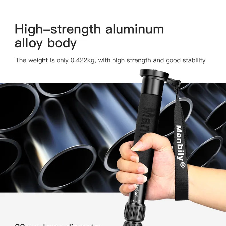Le monopode Manbily A-555 est une solution professionnelle légère et robuste pour les photographes et vidéastes exigeants. Conçu en alliage d’aluminium haute résistance, il offre une excellente rigidité tout en conservant un poids réduit pour un transport facile.