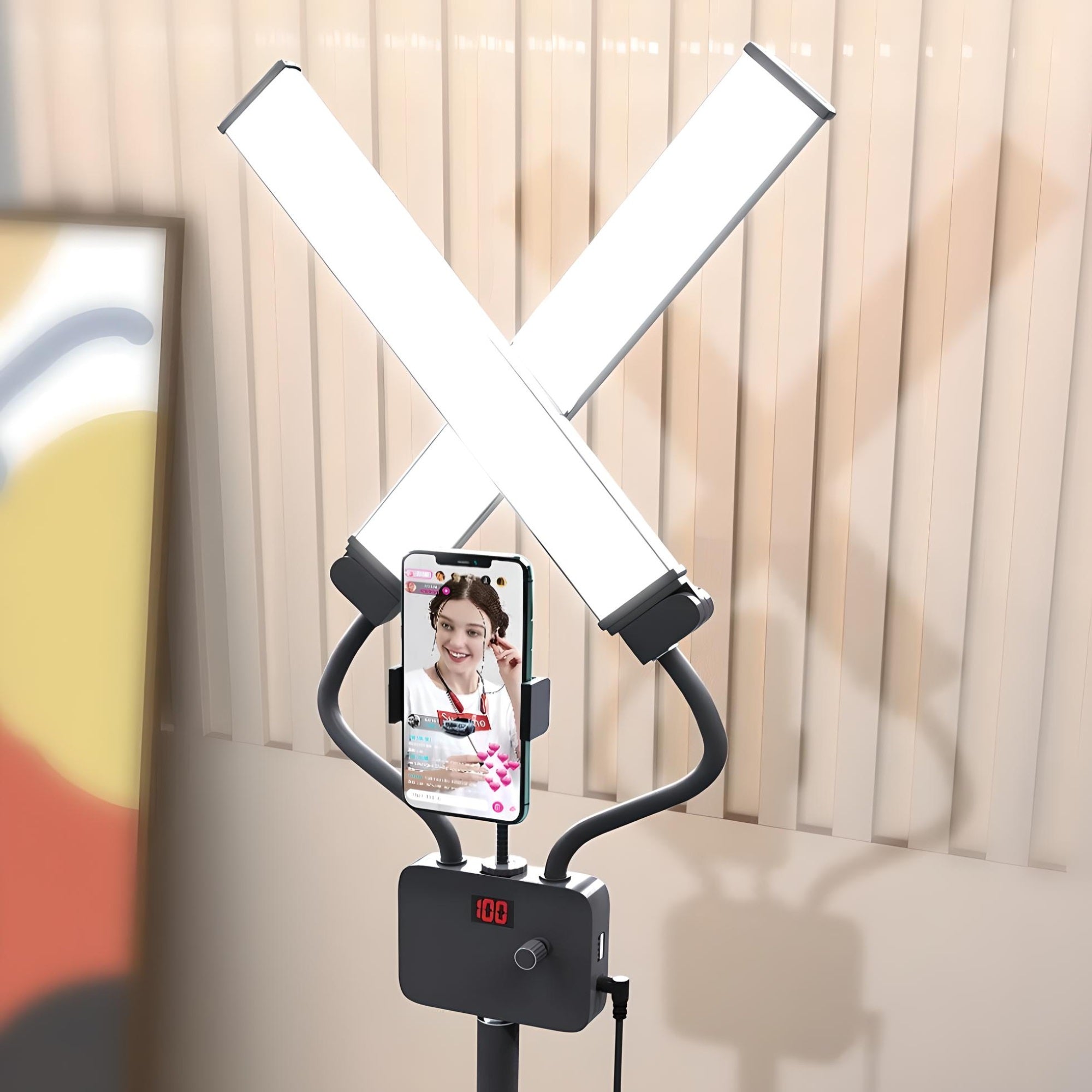Cette lumière LED 45W à double bras offre un éclairage puissant et uniforme, idéale pour la photo, la vidéo, le vlogging ou le live streaming. Sa température de couleur réglable de 3000 à 6500 K permet d’obtenir une ambiance chaude ou froide selon vos besoins.