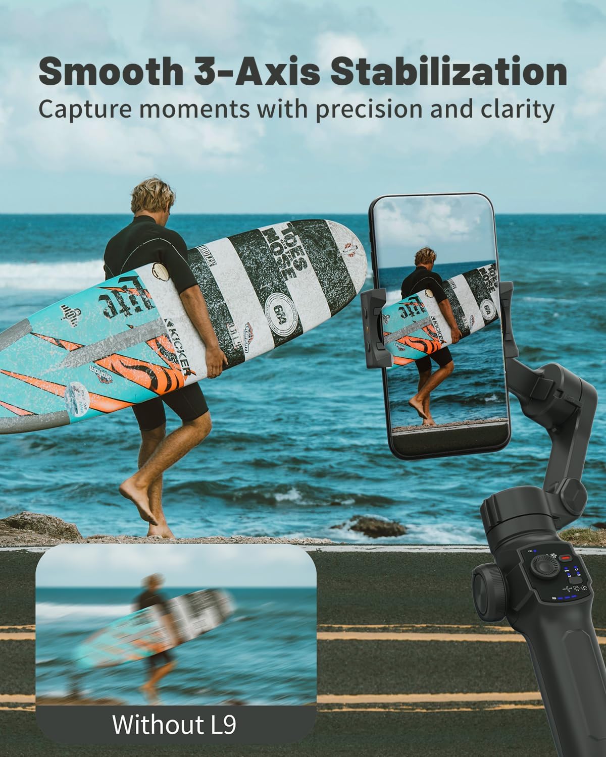 Le L9 Stabilizer est un stabilisateur pliable à 3 axes conçu pour offrir des vidéos fluides, nettes et professionnelles avec votre smartphone.